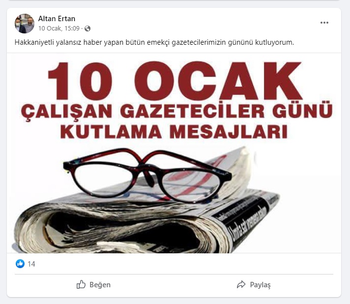 DEVA Partisi Bayrampaşa İlçe Başkanı Altan Ertan’ın 10 Ocak Çalışan Gazeteciler Günü mesajı, görenlerin kafasını karıştırdı.
