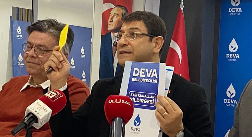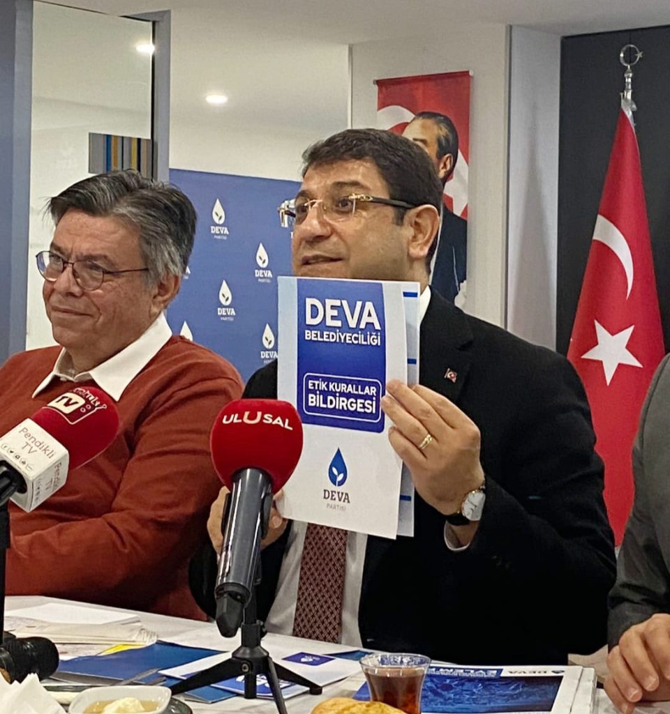 Demokrasi ve Atılım Partisi (DEVA) İstanbul Büyükşehir Belediye (İBB) Başkan Adayı İdris Şahin, basın mensupları ile bir araya geldiği toplantıda, yerel seçimler ile ilgili değerlendirmelerde bulundu. DEVA’nın belediye yönetimine bakış açısını projeler ile anlatan Şahin, DEVA Partisi ve Genel Başkanı Ali Babacan ile özdeşleşen sarı kartı da İmamoğlu ve Kurum’a gösterdi. DEVA Partisi İstanbul İl Başkanlığı’nda düzenlenen programa; Genel Başkan Yardımcısı Candan Karlıtekin, Bahçelievler Belediye Başkan adayı Nalan Ilgın, İl Başkanı Ali Hakan Ağaoğlu, İstanbul seçim Koordinatörü Fesih Zeki Mert ve çok sayıda basın mensubu katıldı. Programda partisinin hazırladığı seçim bildirgesini gazetecilere anlatan İdris Şahin, “Doğru kurallar koyacaksınız, güçlü kurumlar tesis edeceksiniz ve ehliyetli, liyakatlı kadrolarla bu işi yapacaksınız. DEVA Belediyeciliği “Etik Kurullar Bildirgesi” olarak ilan ettik.” İfadelerine yer verdi.
