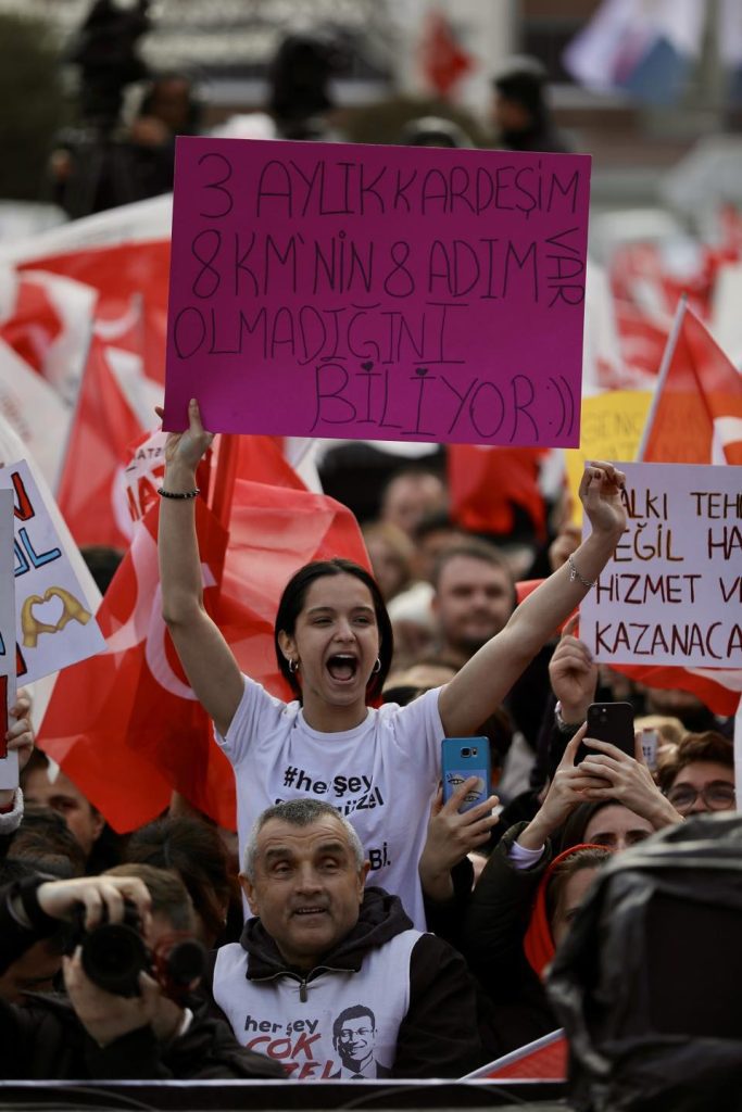 Bir saatlik gecikmenin bile İstanbullulara eziyeti, maliyeti var. İstanbul’un bütçesine yük olarak döner. 10 metro inşaatını plansızlıktan, hesapsızlıktan, parasızlıktan durduran bu kendisini bilmezlere, haddini bilmezlere 31  Mart’ta bence siz bir puan vereceksiniz. Öyle değil mi? Anladınız mı o puanı? Kaç vereceksiniz. Vallahi biliyorlar. Halkımız kime kaç puan vereceğini biliyorlar. Bunların belediyeciliğinin notu bu.2019 öncesinde İstanbul Büyükşehir Belediyesi’nin kaç kreşi vardı biliyor musunuz? Vallahi biliyor işte. En kolay zaten onların notunu bilmek. Şimdi 100 kreşimiz var. Önümüzdeki dönem 200 olacak. Bugün Kağıthane’deydim oradaki adayımızla beraber geziyorduk. Dediler ki, başkanım siz Kağıthane’de de kreşe açınca biz de anlatınca çok eleştiri olunca apar topar bir iki binanın kıyısını, köşesini iki üç derslikli kreş olarak açmış belediye. Dedim iyi gene ders alan var. Hani ders çıkaran var.  İstanbul’un ilçelerin de bizi göreve getirin biz bu şehirde 500 tane kreş açarız.